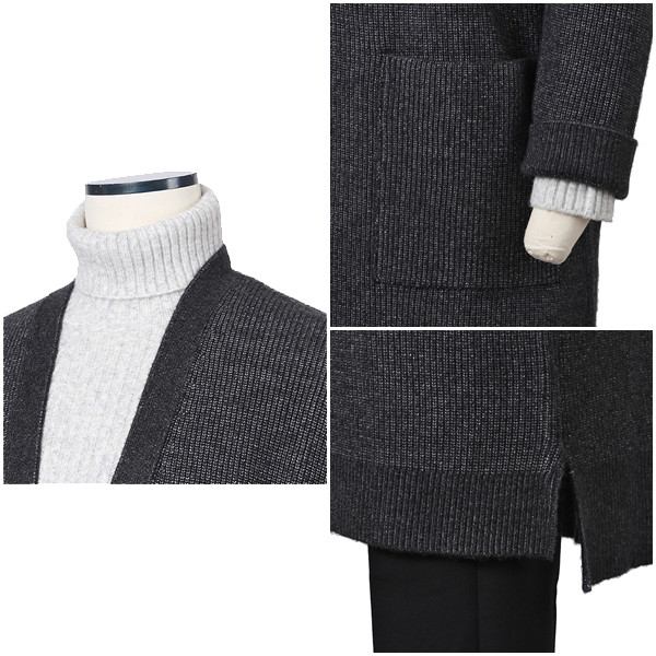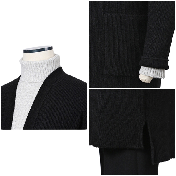 깔끔하게 떨어지는 숄 카라 라인이 매력인 롱가디건 입니다