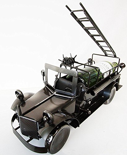 Fire Engine Truck With Ladder Hand Made Metal Wine Bottle Holder Caddy Decor
