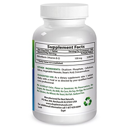 -. Title : Best Naturals Vitamin B2 Riboflavin 100 mg 180 Tablets