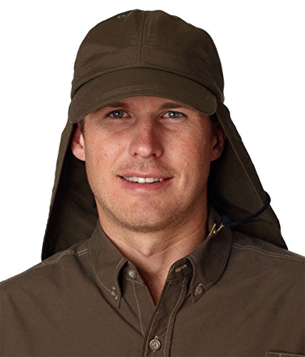 The Extreme Outdoor Hat from the Adam's Headwear Performance Sunblock Collection is designed with the outdoors in mind. This hat has it all for comfort, sun protection and durability. Made of Italon UV®, a new fabric of lightweight durable Anti-UV nylon treated with ceramic coating to reflect harmful UV rays. Hat features a Neck cape with patented zipper pocket, terry cloth sweatband, sewn eyelets, and Cool-Crown mesh liner. Never lose your hat...the plastic clip and cord system attaches to your collar. Has a cord barrel lock closure for easy sizing. ITALON UV® durable Anti-UV Fabric has a UV Protection Factor (UPF) of 45. The Cool-Crown mesh liner inside this hat is designed to promote cooling and minimize staining. One Size. Colors: Khaki, Stone (light tan), White, Navy, Olive Green. Jungle Camouflage. Nautical ReFeature
