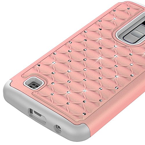 LG K10 Case,LG Premier Case,,GOOQ [Dual layer] Hard PC + Soft Rubber Studded Rhinestone Crystal Bling Dazzling Diamond Hybrid Armor Defender Protective Case Cover for LG K10/LG Premier(Rose Gold/Grey)