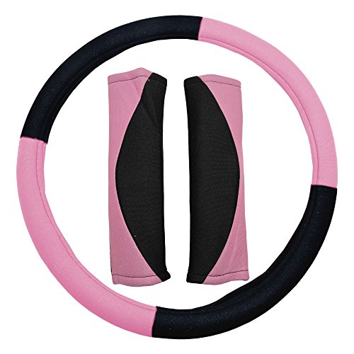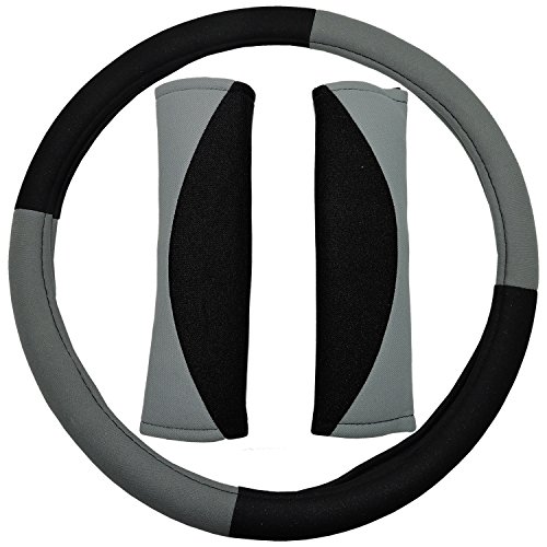 This listing includes 1 steering wheel cover and 2 seat belt shoulder pads. The steering wheel cover will improve the look on your vehicle. The steering is anti- fading; wont fade away with sunlight.The steering wheel cover fits most wheels between 14.5" and 15.5". Very easy to install; just slips on. The shoulderpads are easy to install and give comfort to your everyday drive. This product is manufactured by U.A.A. INC. Exclusively sold by Unique Automotive Accessories. To insure the highest quality and authentic product please make sure you are purchasing from Unique Automotive Accessories. Please report counterfeit as this product is covered under US trademark/patent.Feature