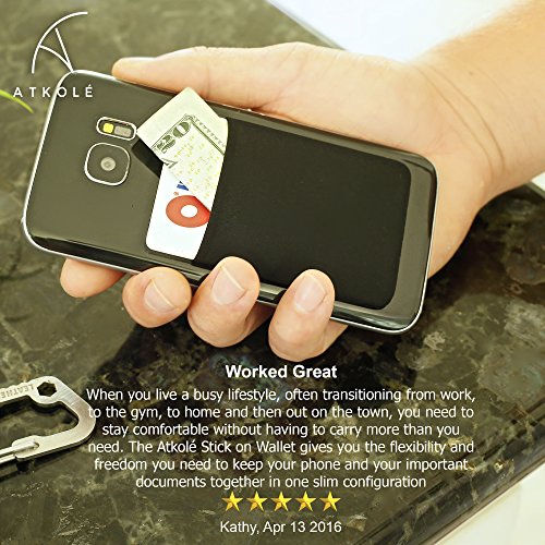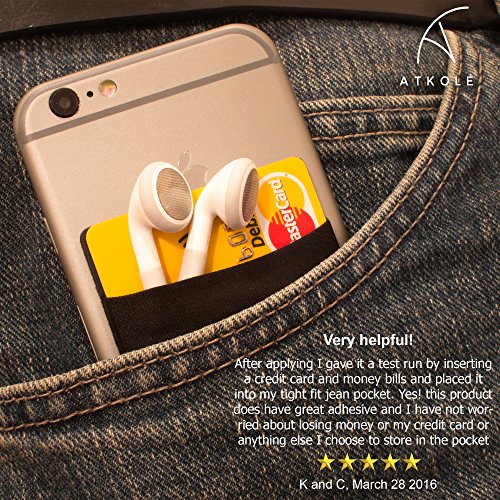 Atkolé Credit Card Holder Stick on Wallet (Black) | Discreet ID Holder - Lycra Spandex Card Sleeves for Smartphones, iPhone 6, Samsung Galaxy | Cell Phone Wallet Case with 3M Adhesive