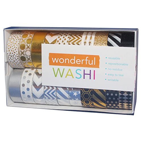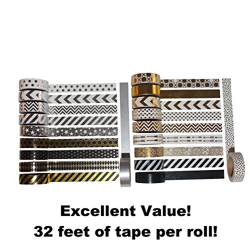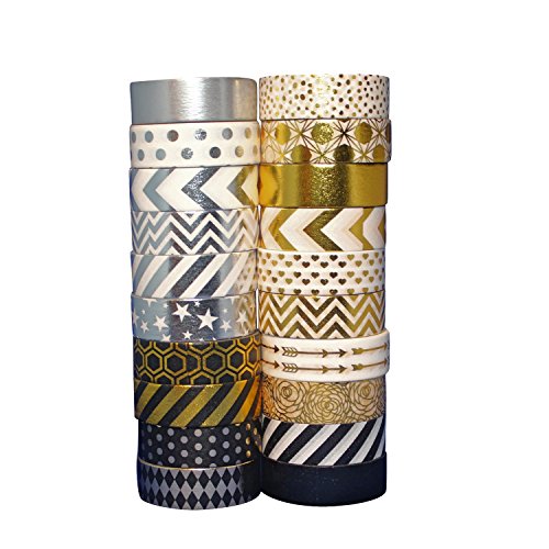 Wonderful Washi Japanese Decorative Paper Foil Craft Tape Elegant Collection Gold & Silver (Set of 20 rolls) Extra Long (32 feet!)