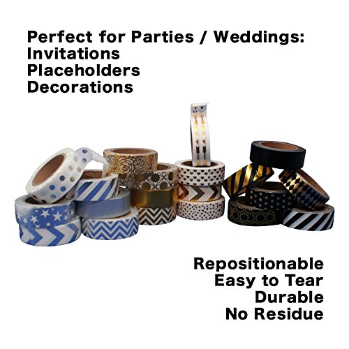 - PERFECT FOR WEDDINGS, EVENTS & PARTIES | Exclusive gold, silver, black and white high quality foil tape for all your party needs. Perfect for wedding or party decorations, invitations, favors and décor.
