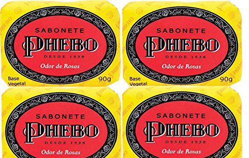 -. Title : Phebo Body Soap - Odor of Roses - 3.1oz | Sabonete Barra Odor de Rosas Phebo - 90g (pack of 4)