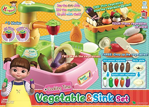 -. Title : English package Kongsuni Series Vegetable & Sink Set Vegetable Playset Cooking Kitchen Play Set for Kids Early Age Development Educational Roleplay Food Assortment Set Chef playset Toy Sink