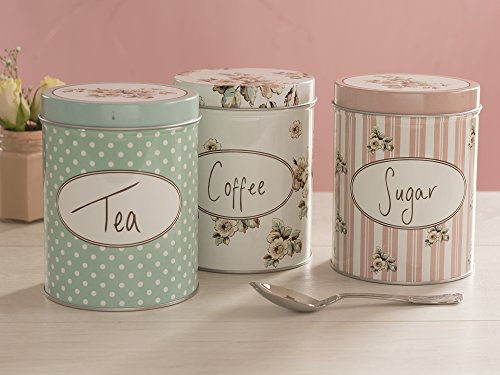 -. Title : Katie Alice - Set of Three Cottage Flower Large Coffee, Sugar & Tea Storage Tins