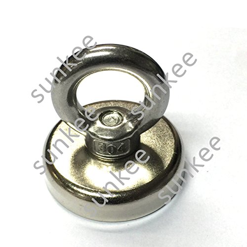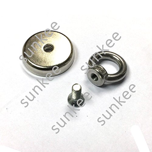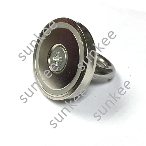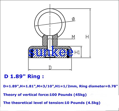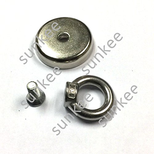 SUNKEE Salvage Magnet,100 Pounds Magnetic Hook , Round Base Magnet Fastener with Eyebolt Chrome Plate ,Neodymium Iron Boron Magnet With Circular Rings For Salvage,1.89" Diameter, 1.81" Total Height