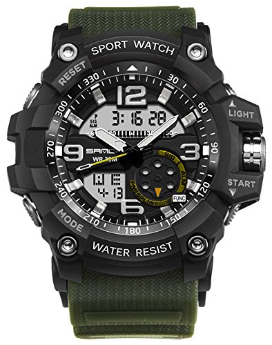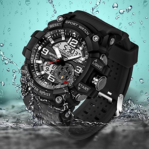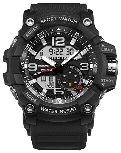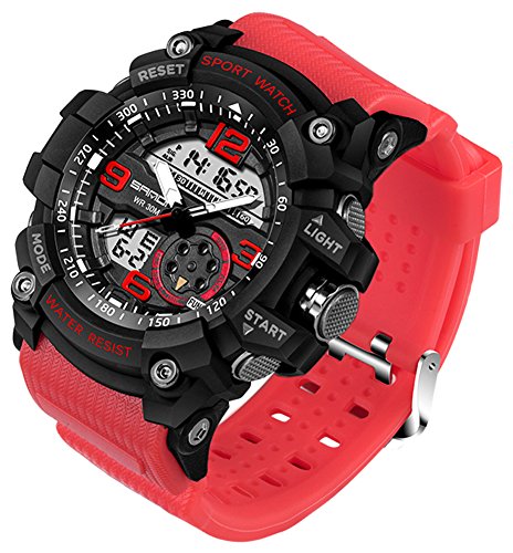-. Title : SANDA Digital Watch Silicone Band Multifunctional Waterproof LED Military Sport Dual Display Wristwatch