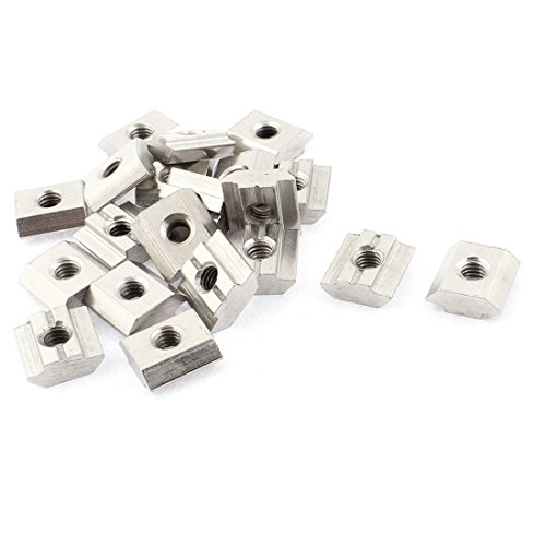 uxcell M6 Female Thread T-slot Sliding Block Slot Nut 20pcs Silver Tone