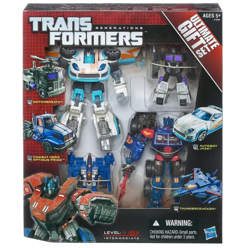 -. Feature : Ultimate Gift Set includes Combat Hero Optimus Prime, Autobot Jazz, Motorbreath and Thundercracker figures / Optimus Prime figure has a hidden sword / Autobot Jazz figure is armed with a blaster / Motorbreath figure comes with a sword / Thundercracker figure is armed with a blaster cannon