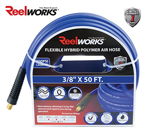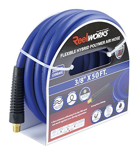 REELWORKS Blue Hybrid Polymer Air Hose Heavy Duty, Light Weight, Flexible, Kink resistant 3/8" by (50 Feet)