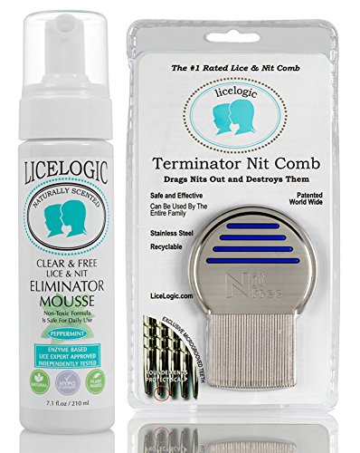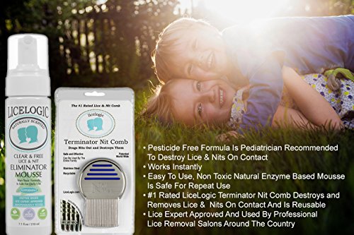 LiceLogic Lice Nit Eliminator Mousse Treatment Kit - No Pesticides - 2 Piece Kit For One Day ...