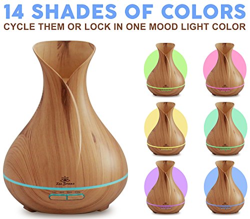 Essential Oil Diffuser For House - 14 Color LED Night Light - Our Best Wood Grain - Birthday Gifts & Housewarming Gifts Deluxe Edition, by Zen Breeze
