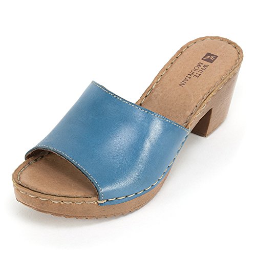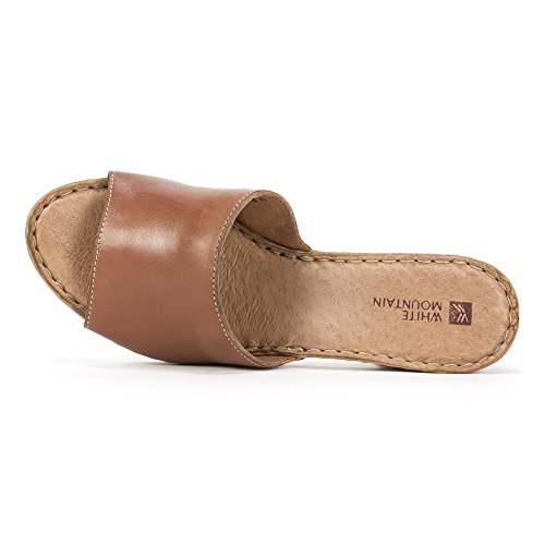 Studio : White Mountain Publisher : White Mountain Binding : Apparel Product Description Faux wood bottom highlights the morsel single band slide from white mountain. 100% leather upper and sock lining. Wood like unit actually is flexible. 2 1/2 inch heel and 3/4 inch platform make it practical for al day wear. 0