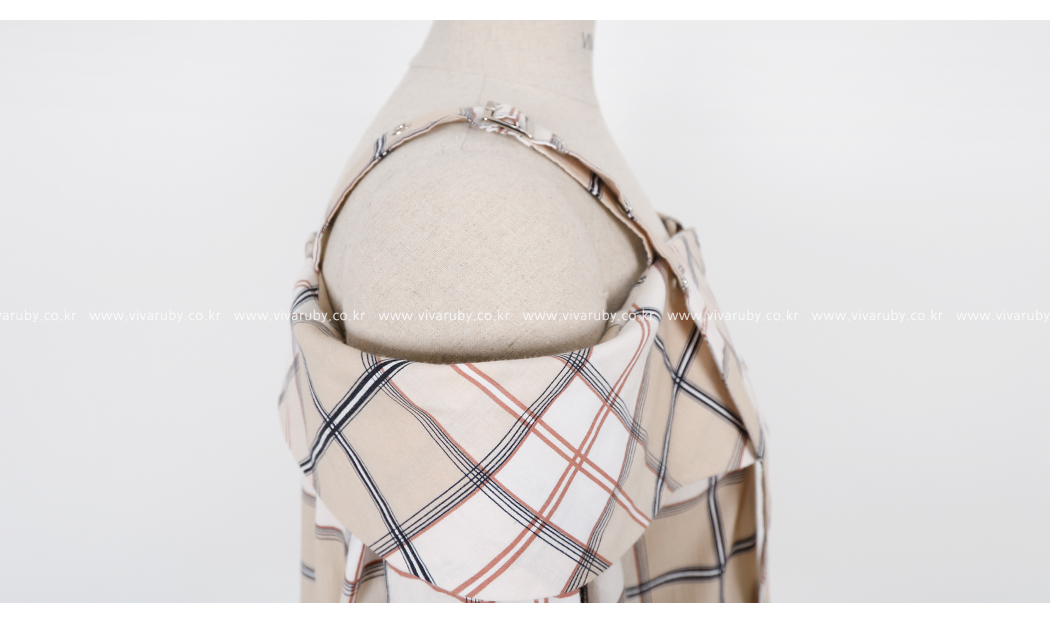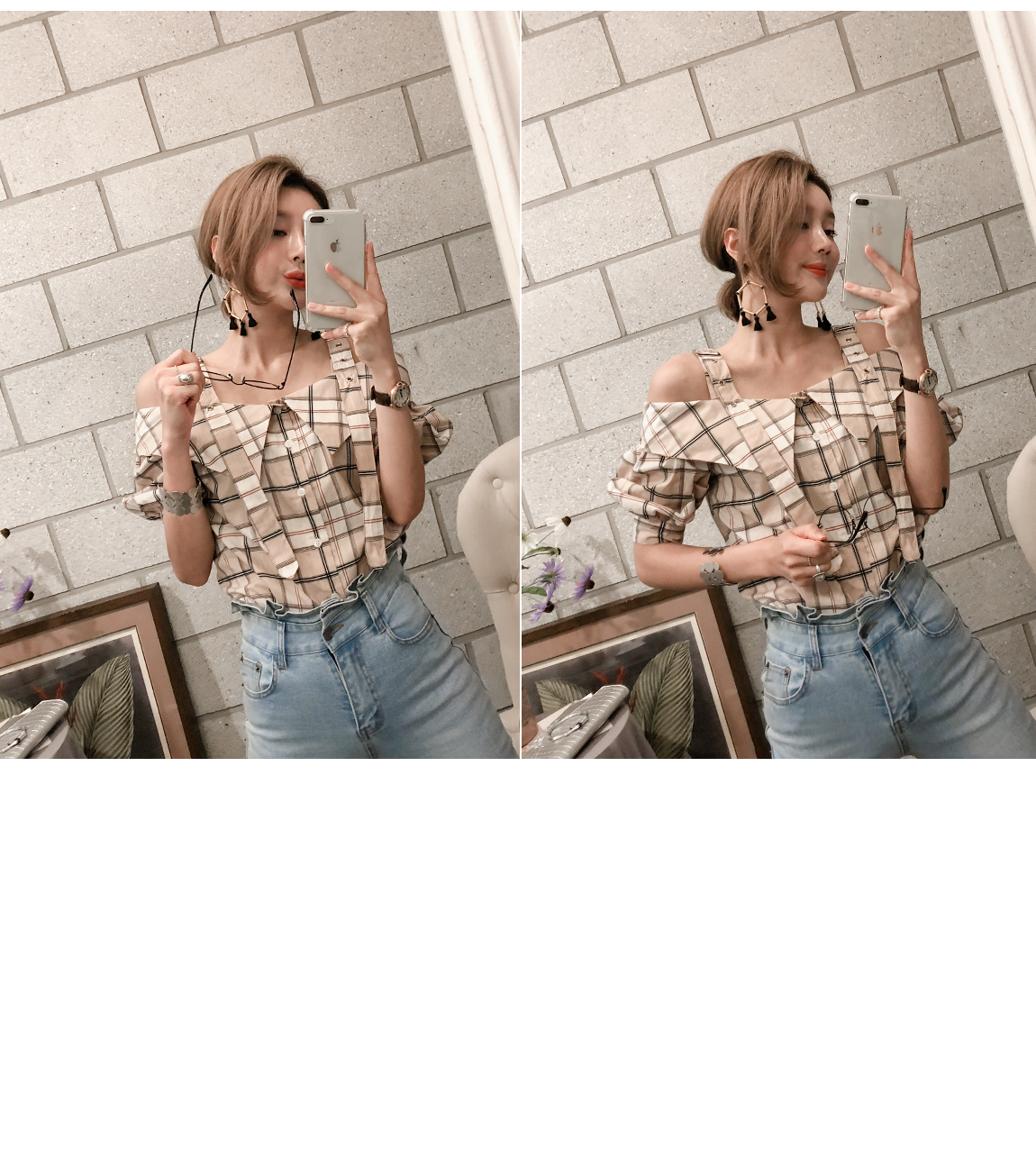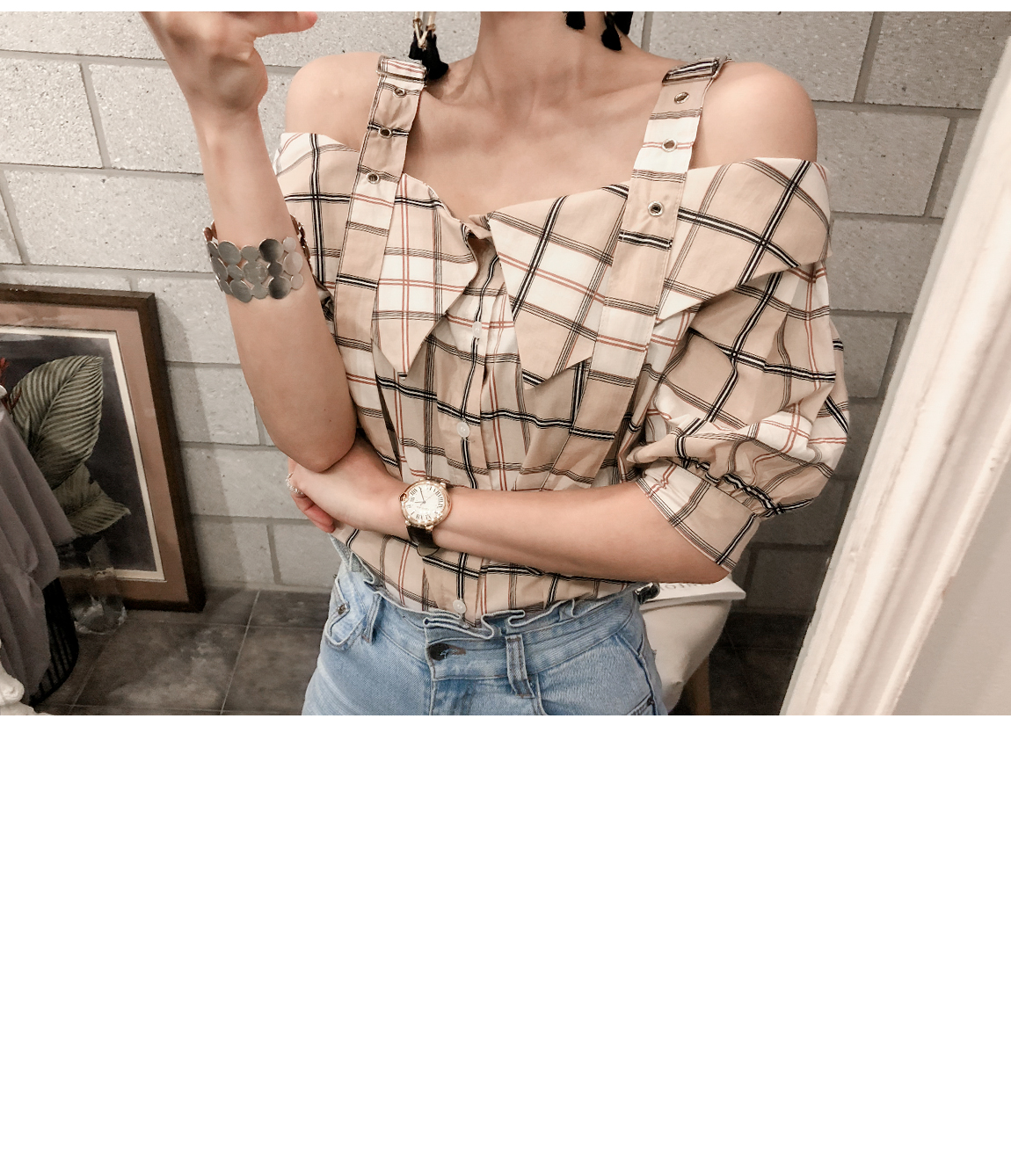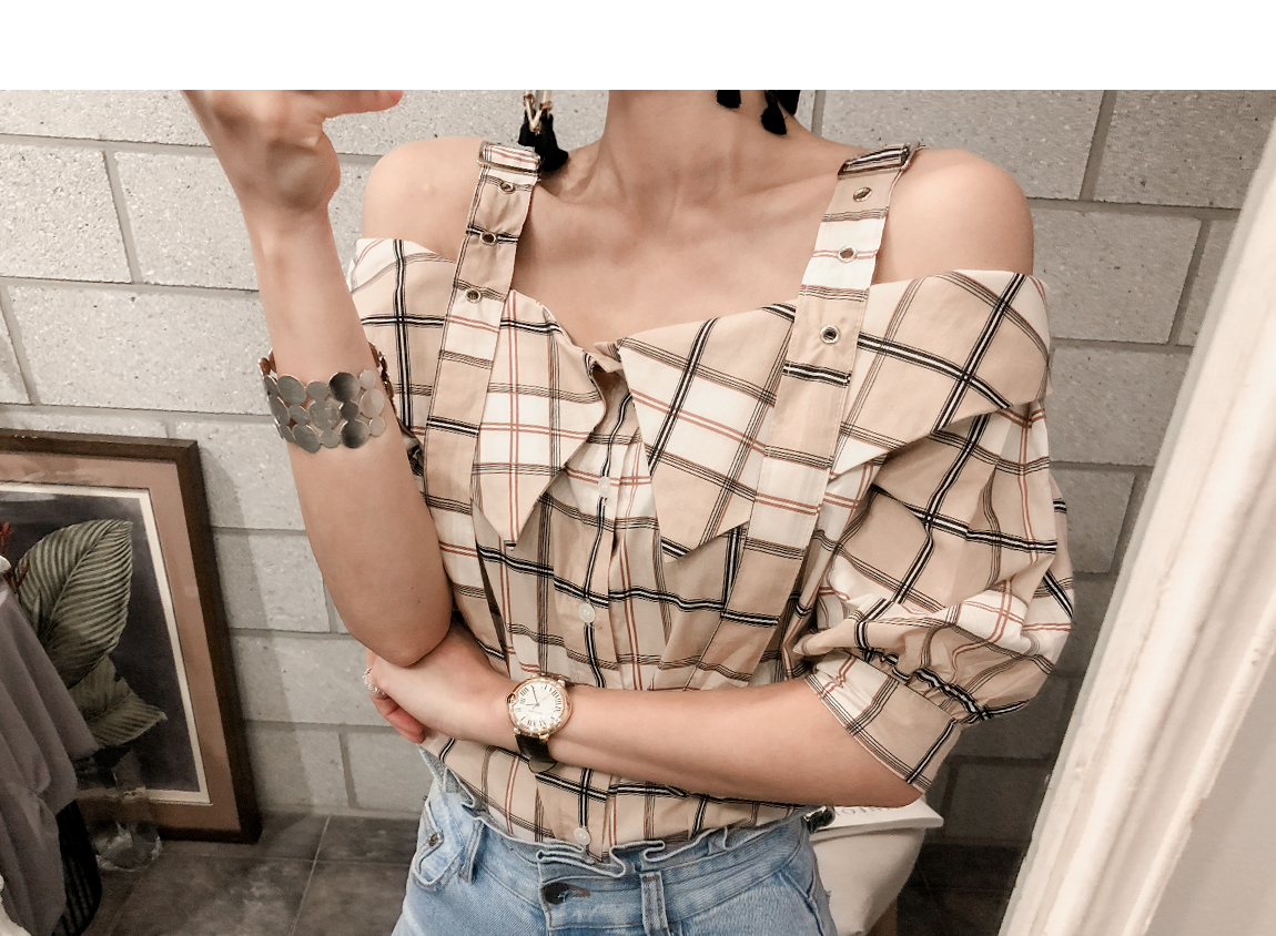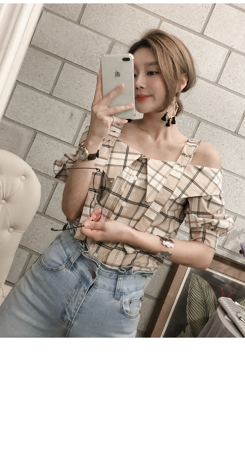 'チェックのバックルブラウス'