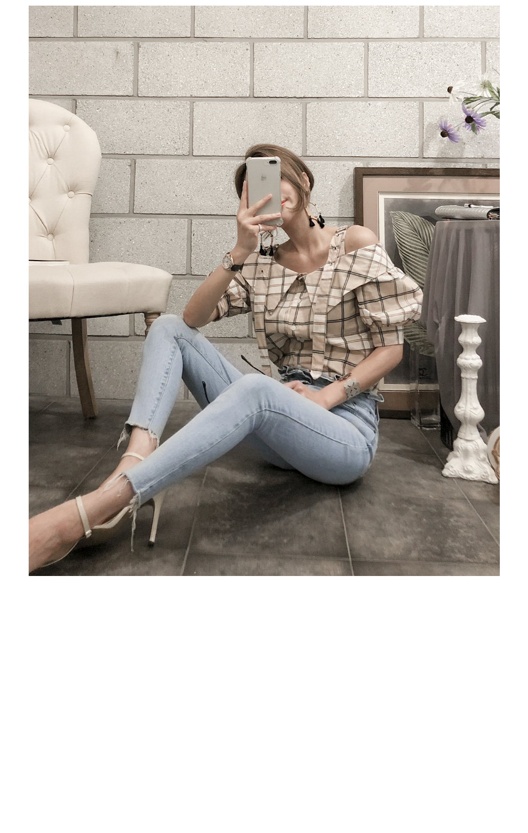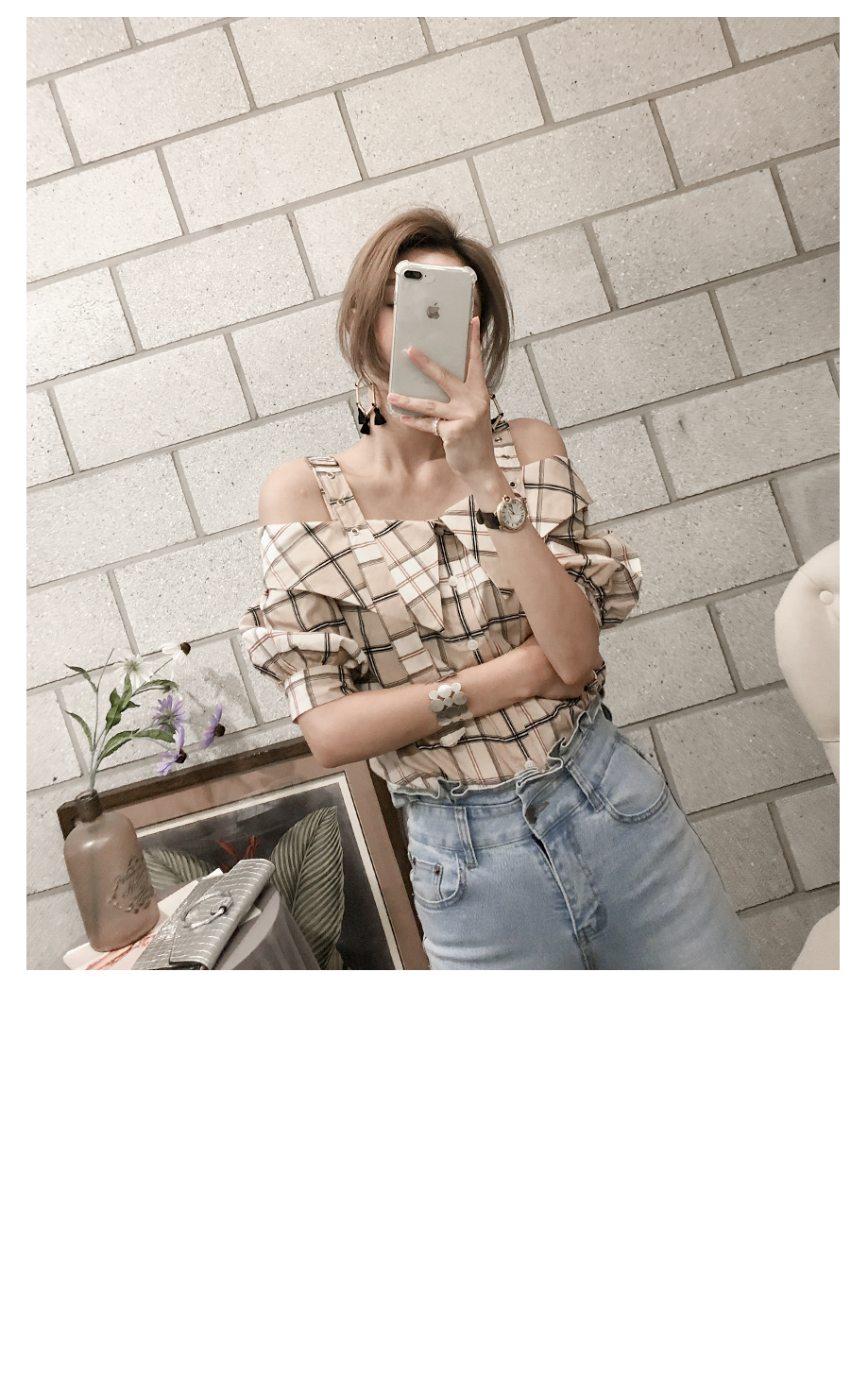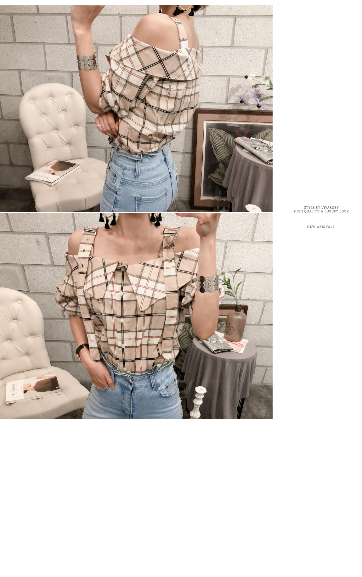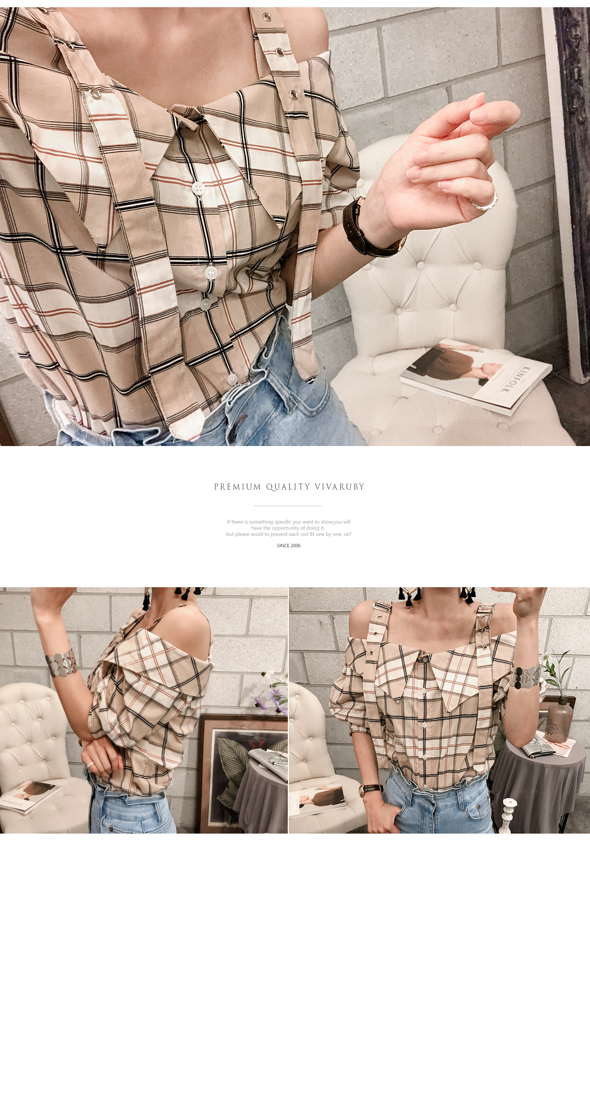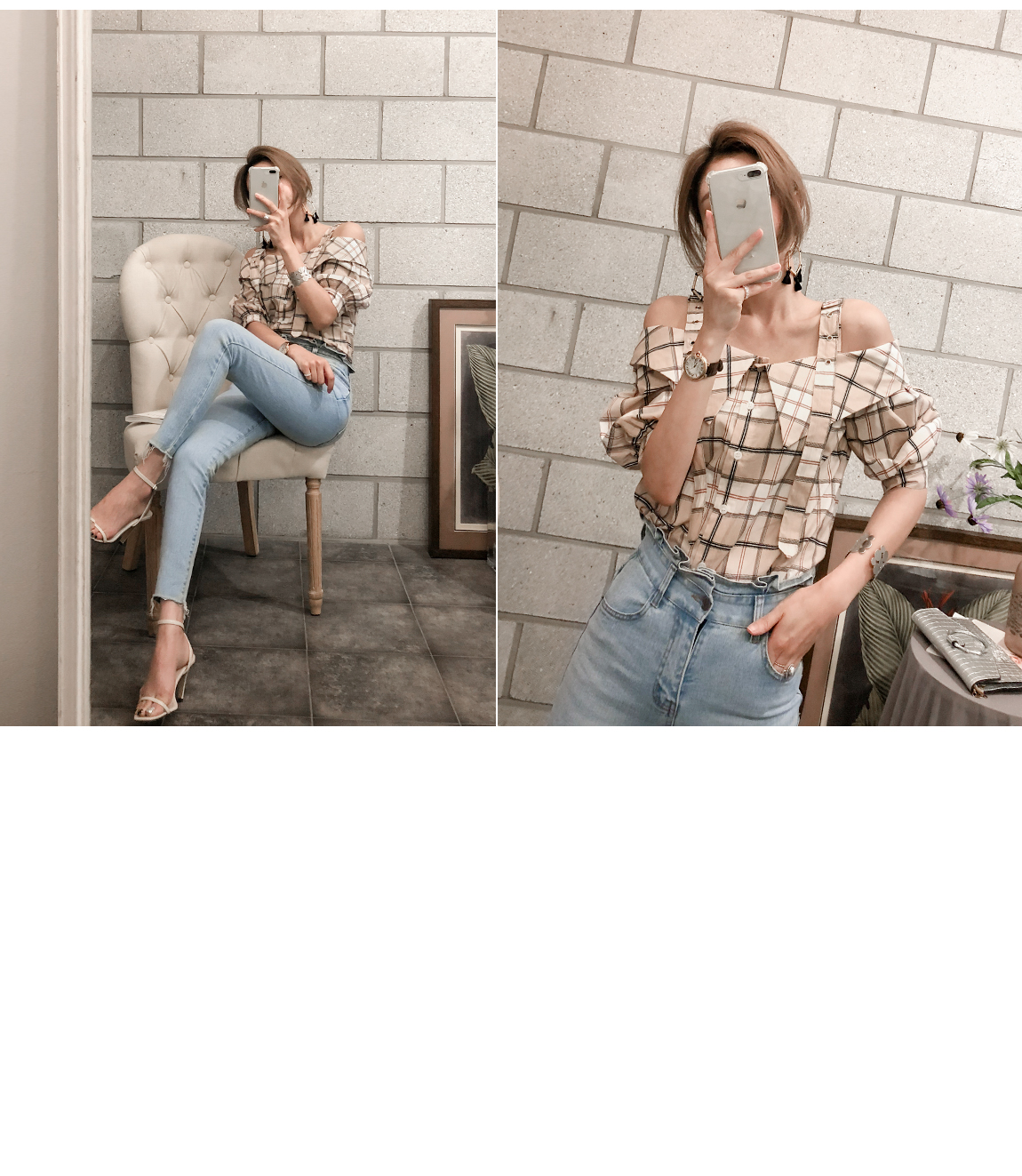 'チェックのバックルブラウス'