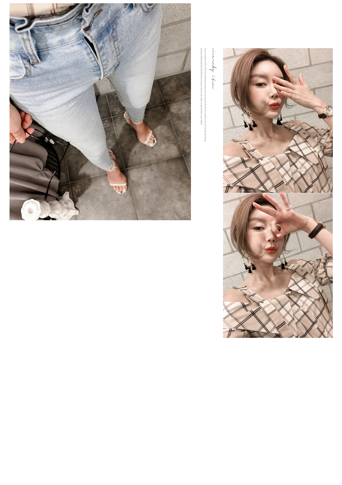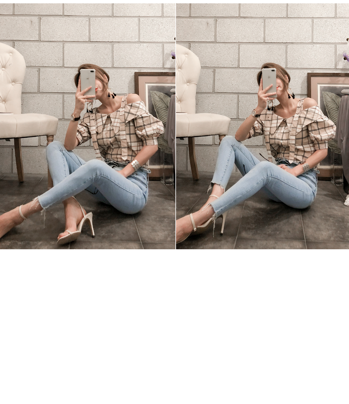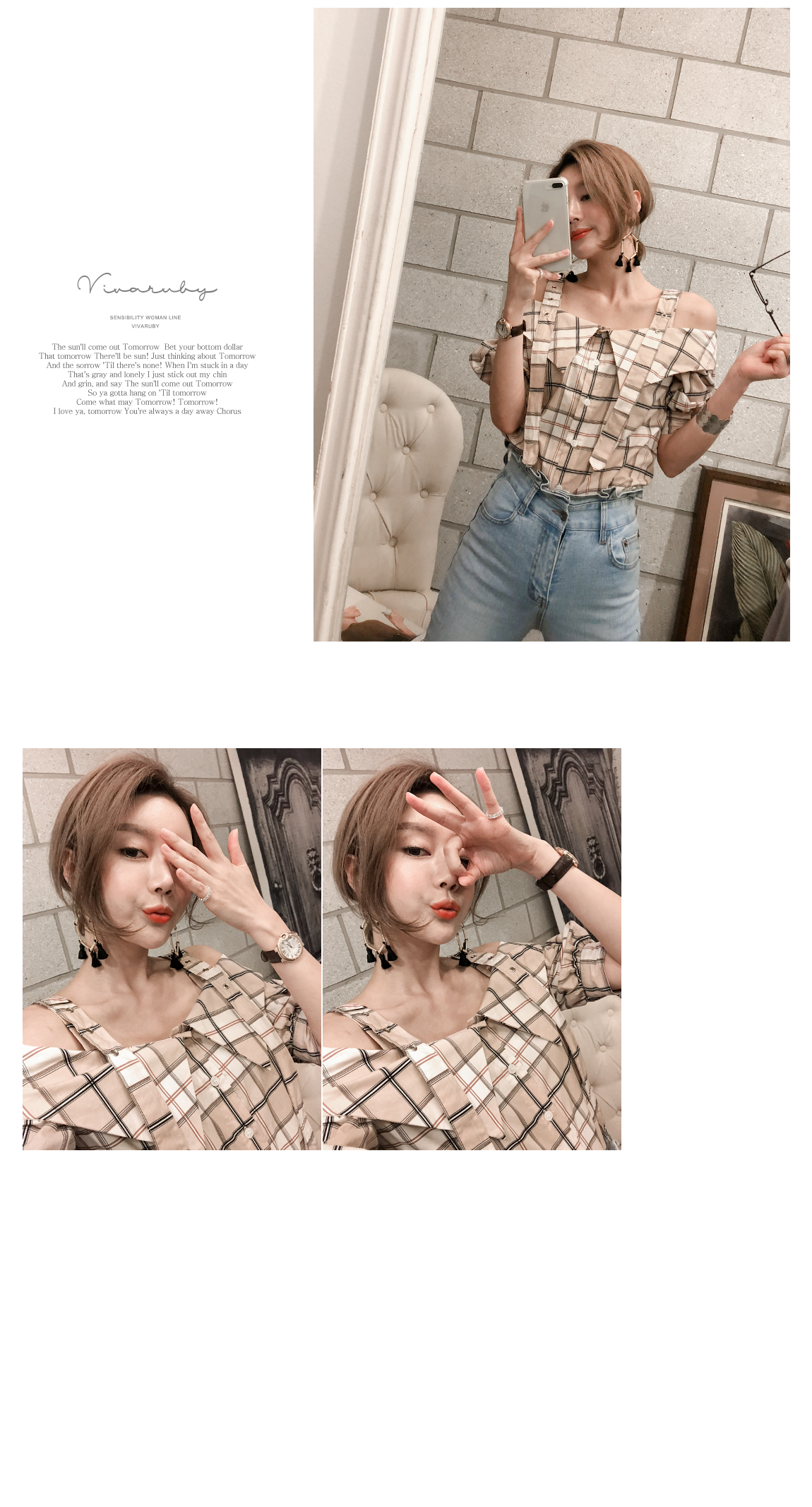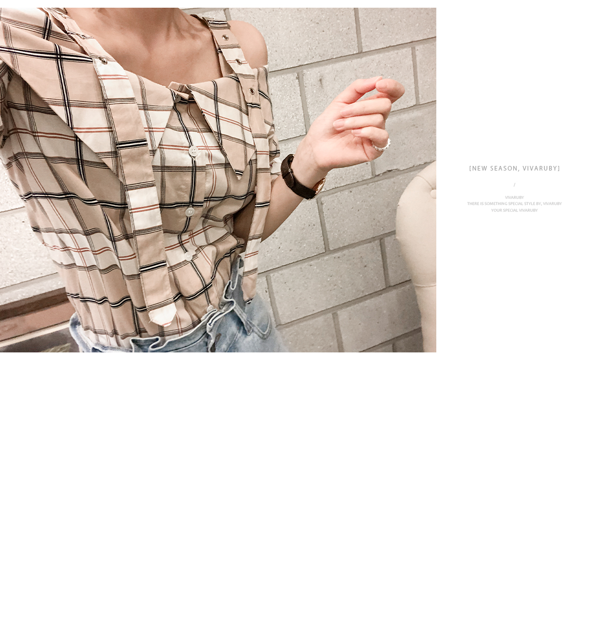 'チェックのバックルブラウス'