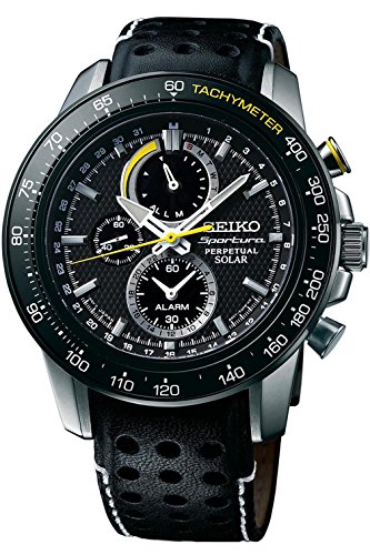 -. Title : SEIKO SSC361P1,Men's Sportura Solar,Perpetual,Alarm,Black Leather,Stainless Steel Case,Screw Crown,100m WR,SSC361