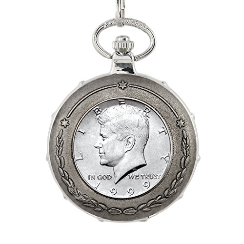 -. Title : JFK Half Dollar Silvertone Train Pocket Watch