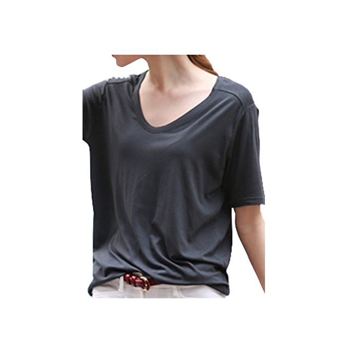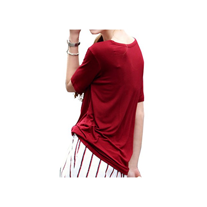 ELPIS 레이디스 코튼 ## T셔츠 5 분소매 V넥 어른 캐주얼 예쁜 트렌드 전8색 ( 레드,L )