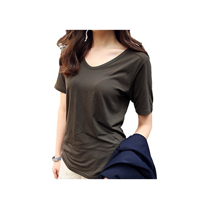 원본상품명: ELPIS レディス コットン ゆる Tシャツ 5分袖 Vネック 大人 カジュアル きれいめ トレンド 全8色