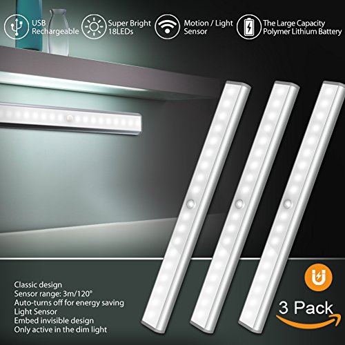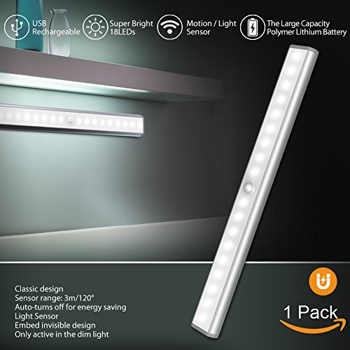 The latest version: Removable & USB rechargeable, energy-saving LED light, 3 different ways keep it instant on or off, or make it motion activated.