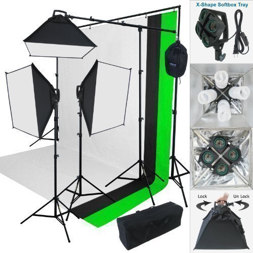 Linco Lincostore 2000 Watt Photo Studio Lighting Kit With 3 Color Muslin Backdrop Stand Photography Flora X Fluorescent 4-Socket Light Bank and Auto Pop-Up Softbox -- Only takes 3 seconds to Set-up