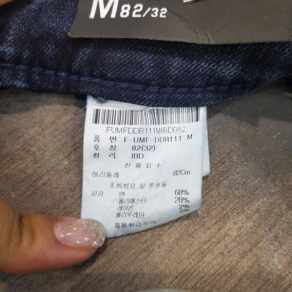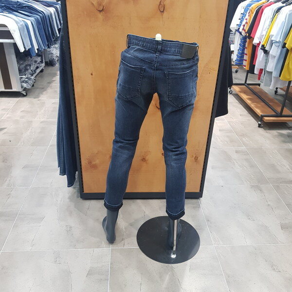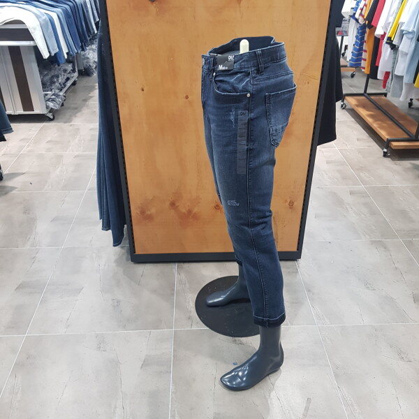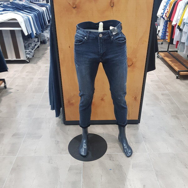 D톤의 엠보 크롭 라이더 팬츠. 엠보워싱 가공으로 입체감을 살리고 워싱은 깔끔하게 작없하여 데일리로 착용가능한 데님