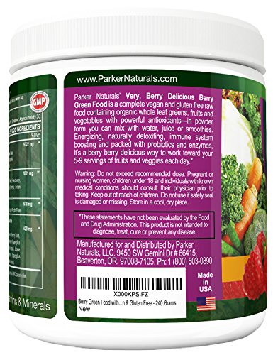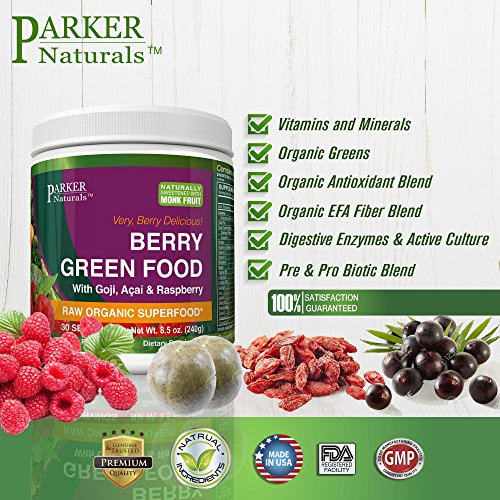 -. Title : Berry Green Superfood Powder with Organic Greens & Organic Fruits, Enzymes, Probiotics, Antioxidants, Vitamins, Minerals - Alkanize & Detox - Non GMO, Vegan & Gluten Free - 240 Grams