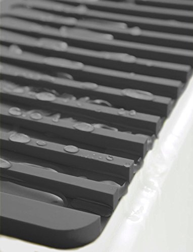 - Feature : 1 YEAR NO FUSS GUARANTEE - If you're not completely satisfied simply return it for a prompt refund, no questions asked! / DRYING MAT - This drying mat has self-draining smooth slopes, which allow water to flow back into the sink, instead of resting in the ridges. Allows users to air dry hand-washed dishes, utensils, glasswares, cookwares, milk bottles, and more. / PREVENTS MOLD & MILDEW - Made of 100% antimicrobial food-grade silicone, this drying mat prevents the growth of germs, mold and mildew; leaving you with safe, clean, and dry dishes & glasswares. / EASY TO CLEAN - Rinse with warm water, mild dish soap, an antimicrobial food-grade silicone, this drying mat prevents the growth of germs, mold and mildew; leaving you with safe, clean, and dry dishes & glasswares.d air dry. Dishwasher approved for top rack only. / GREAT AS A TRIVET - In addition to being a high-quality and durable, this drying mat can be used as a heat-resistant trivet to protect your table and countertop. Product Dimension (L x W x H): 14 7/8" x 7 7/8" x 1/2"