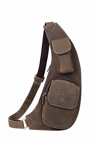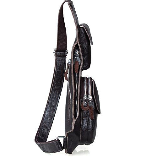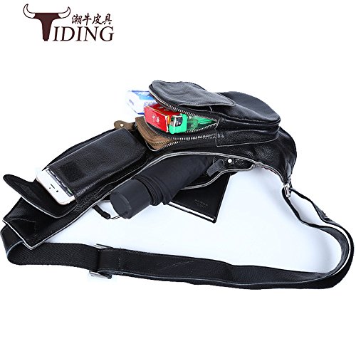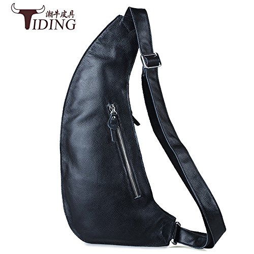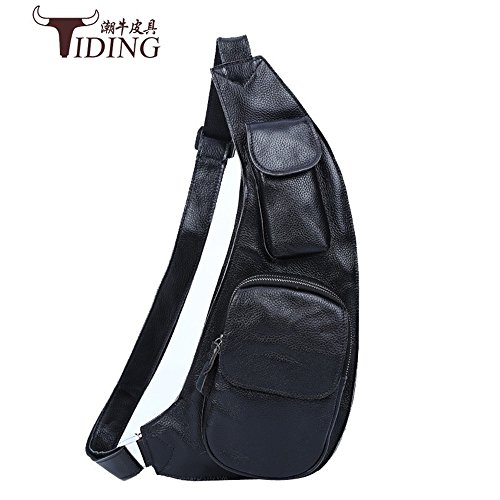 -. Title : Tiding Men's Cowhide Leather Litchi Luxury Style Sling Chest Shoulder Bag 3011