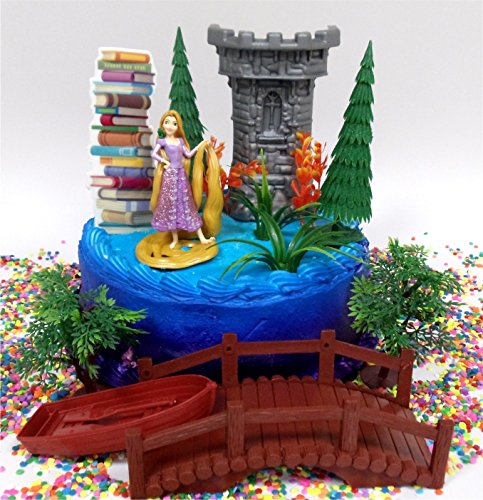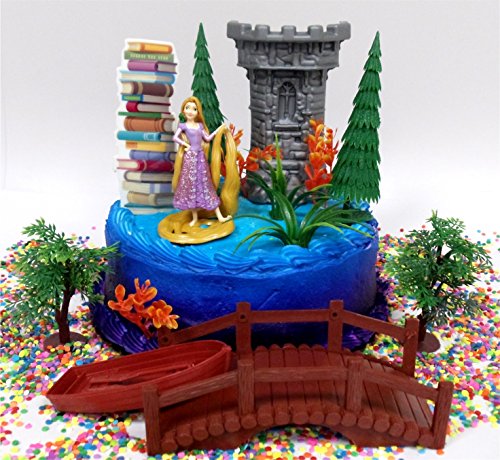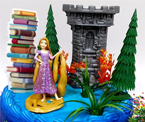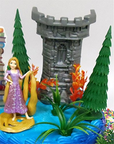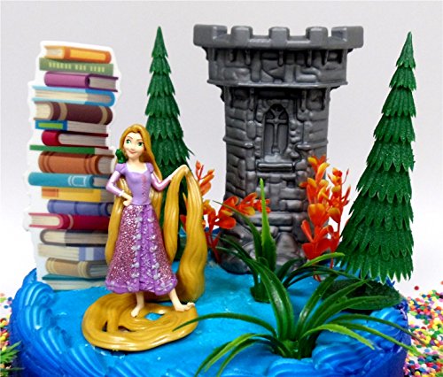 Tangled PRINCESS RAPUNZEL Themed Birthday Cake Topper Set Featuring Rapunzel Figure and Decorative Themed Acceesories