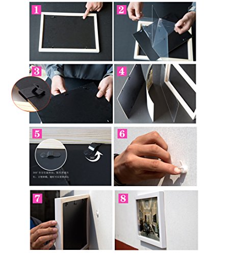 -. Feature : picture frame hanging wall can be horizontal or vertical to use, just adjust the S hook location. / At the front there is a kind of high transparent acrylic sheet, double sided with protective film, Please all torn off when use! Organic glass replace traditional glass, invulnerability to breakage and convenient transportation, use safety. / Mat is cut in 45 degrees of bevel edge to genre, have stereo feeling more. Mat is alkaline, can keep the pictures dry and prevent discoloration. / Frame is made of drying mongolica, Moisture and not easy to deformation. / backboard is high density board and single stick black moistureproof pape. With free rotating dial button, it is more convenient to change the photo.