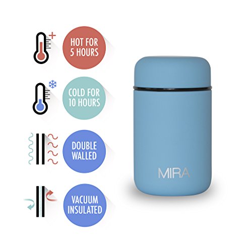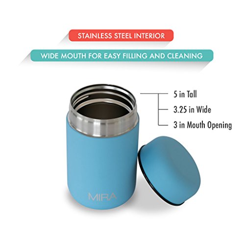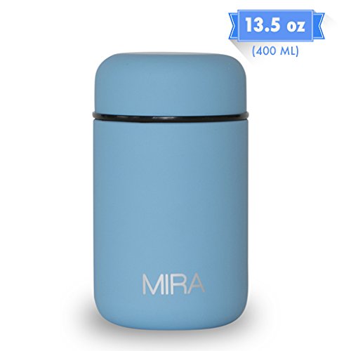MIRA Lunch, Food Jar, Vacuum Insulated Lunch Thermos, 13.5 Oz, SkyHigh-Quality: The MIRA durable lunch food jar is made of 18/8 food-grade stainless steel. The high-quality insulated lunch container keeps your healthy, homemade and delicious lunches and snacks hot for up to 5 hours or cold for up to 10 hours in this double wall vacuum jar. Eco-friendly, reusable, easy-to-fill wide mouth is also easy to clean.