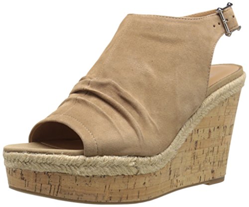 Product DescriptionCork-wrapped platform wedge sandal in soft suede materials with adjustable buckle.0