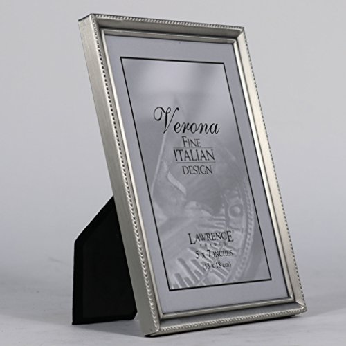 -. Binding : Kitchen -. Brand : Lawrence Frames -. Color : Pewter -. Department : Accent -. EAN : 0751148035026 -. Feature : Traditional pewter metal frame that will compliment any décor / Constructed of heavy weight metal; includes high quality black velvet backing / Traditional narrow high quality pewter finish frame / Wipe clean with dry cloth / Holds 5 inch by 7 inch photo; overall dimensions 5.1 inches by 7.1 by 0.7 inches -. Label : Lawrence Frames -. Manufacturer : Lawrence Frames -. Model : 11557 -. MPN : 11557 -. NumberOfItems : 1 -. PackageQuantity : 1 -. PartNumber : 11557 -. ProductGroup : Home -. ProductTypeName : HOME -. ProductTypeSubcategory : other-professional-frames -. Publisher : Lawrence Frames -. Size : 5x7 -. Studio : Lawrence Frames -. Title : Lawrence Frames Antique Pewter 5x7 Picture Frame - Bead Border Design -. UPC : 773822332467 -. Warranty : parts