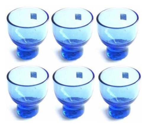 Product DescriptionSet of six new 2 ounce blue glass sake cup made in China. Measures 2 1/8" in diameter and 2 1/2" high.0