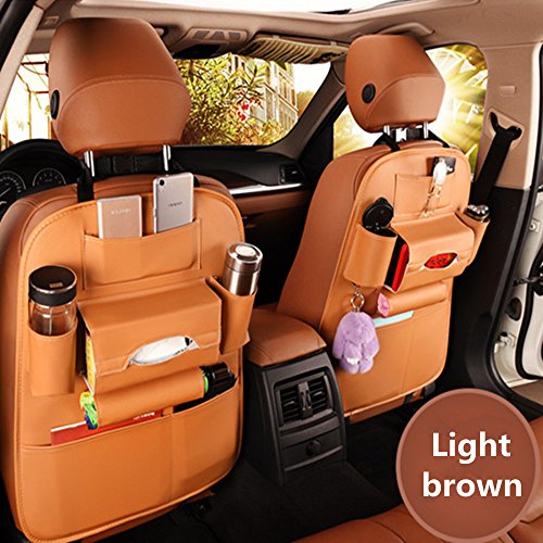 -. Title : MEGOOD Multi-function Leather Vehicle Storage Bag Car Auto Front or Back Seat Organizer Travel Storage Bag(Light brown,set of 1)