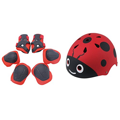 -. Feature : MULTI-SPORT PROTECTIVE GEAR SET - Package Content: 1 Pair Knee Pads, 1 Pair Elbow Pads ,1 Pair Wrist Guards, and 1 Child Helmet . Can be use for Skateboarding, Roller Skating, Cycling, Biking, Riding, Skateboard and Scooter, etc. / High Quality -100% Brand new,Made of high-quality EPS foam and EVA material that is eco-friendly, nontoxic, comfortable, adiabatic, sweat absorbing, breathable, durable and safe to use. / DESIGNED FOR KIDS - it will be effectively to protect your children from hurting and keep away from danger when they are enjoying bicycle, skateboad, rollerblades, and other outdoor sports. / Warm Prompt - Wear in ccorect way can reduce sport injury effectively, but can't prevent injury absolutely, so user should avoid dangerous movements,Please don't use corrosive solvent to clean protectors. / All protectors must be fixed safety buckle and velcro firmly,comfortable and natural while wearing, secure joint firmly, not easy to fall off,average useful life is 2 years, please replace immediately according to the actual situation.