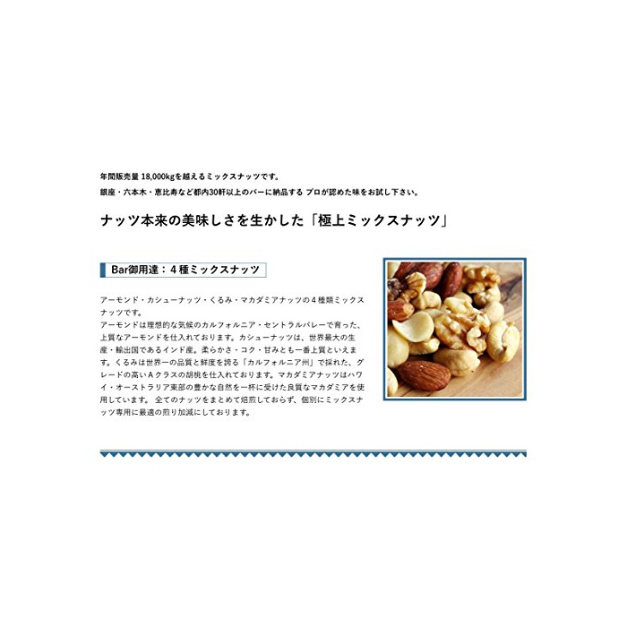 【 창업60년 너트의 전문점 작은 섬 집 】 엄선 4종류 믹스 너트 1kg Bar납품업자(어용상인) 얇은염 오리지날직 화배전