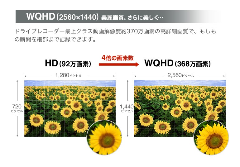 | 録画解像度 | WQHD(2560×1440/60fps)、FULLHD(1920×1080/30fps) |