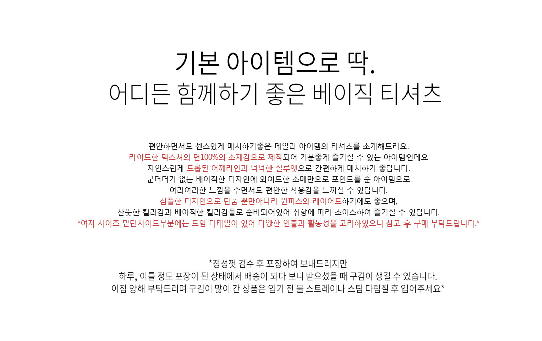 .같은 사이즈라도 체형에 따라 핏감이 조금씩 다를 수 있습니다.