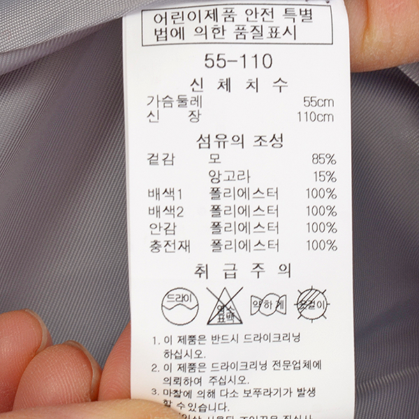 제품소재 : 겉감: 모85% 앙고라15%배색1 배색2안감 충전재: 폴리에스터100%