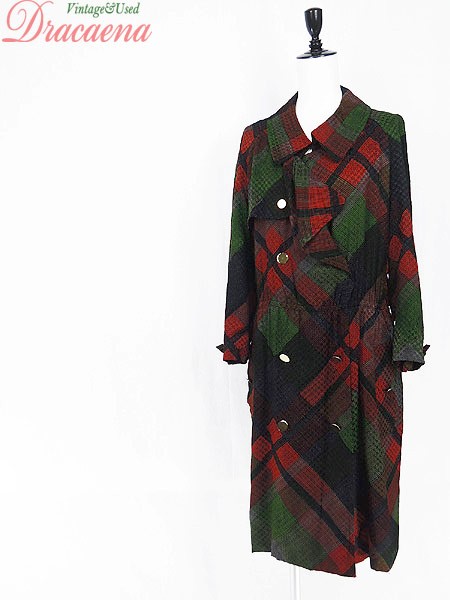 Ladies ブランド- カラー赤・緑・黒・グレー メール便不可 コンディション★★★ 素材記載なし 表記サイズ8 スタッフコメント裏地付き。付属品ベルトなし。 実寸サイズ 着丈 102 cm 身幅 55 cm 袖丈 61 cm ウエスト 76cm 〜 96cm (30インチ〜38インチ) ※ウエスト・ヒップ以外は平置き採寸
