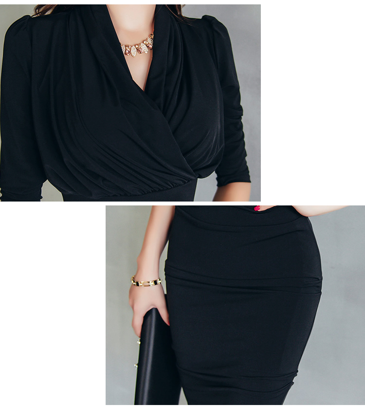 首元を美しく見せるカクシュールデザインと、タイトなデザインがフェミニンでセクシーな一着♪