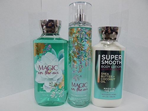 -. Binding : Misc. -. Brand : Bath & Body Works -. Color : white -. EAN : 0656793156792 -. Feature : 3 New Magic in the Air with the newer softer lotion -. IsAdultProduct : 0 -. Label : Bath and Body -. Manufacturer : Bath and Body -. MPN : 00652 -. PartNumber : 00652 -. ProductGroup : Beauty -. ProductTypeName : BEAUTY -. Publisher : Bath and Body -. Studio : Bath and Body -. Title : Bath and Body Works Magic in the Air 3 Piece Set 8 oz Body Lotion New Softer, 8 oz Fine Fragrance Mist, 10 oz Shower Gel -. UPC : 656793156792