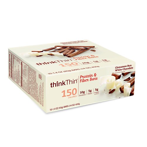 -. Title : Think Products Think Thin Protein & Fiber Bar - Cinnamon Bun White Chocolate - 10 Bars (40g each)