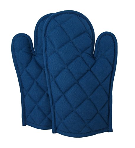 Shalinindia Cotton Oven Mitts Set of 2 Quilted Cooking Gloves,OG02-1416P,Navy,8 x12 Inch
